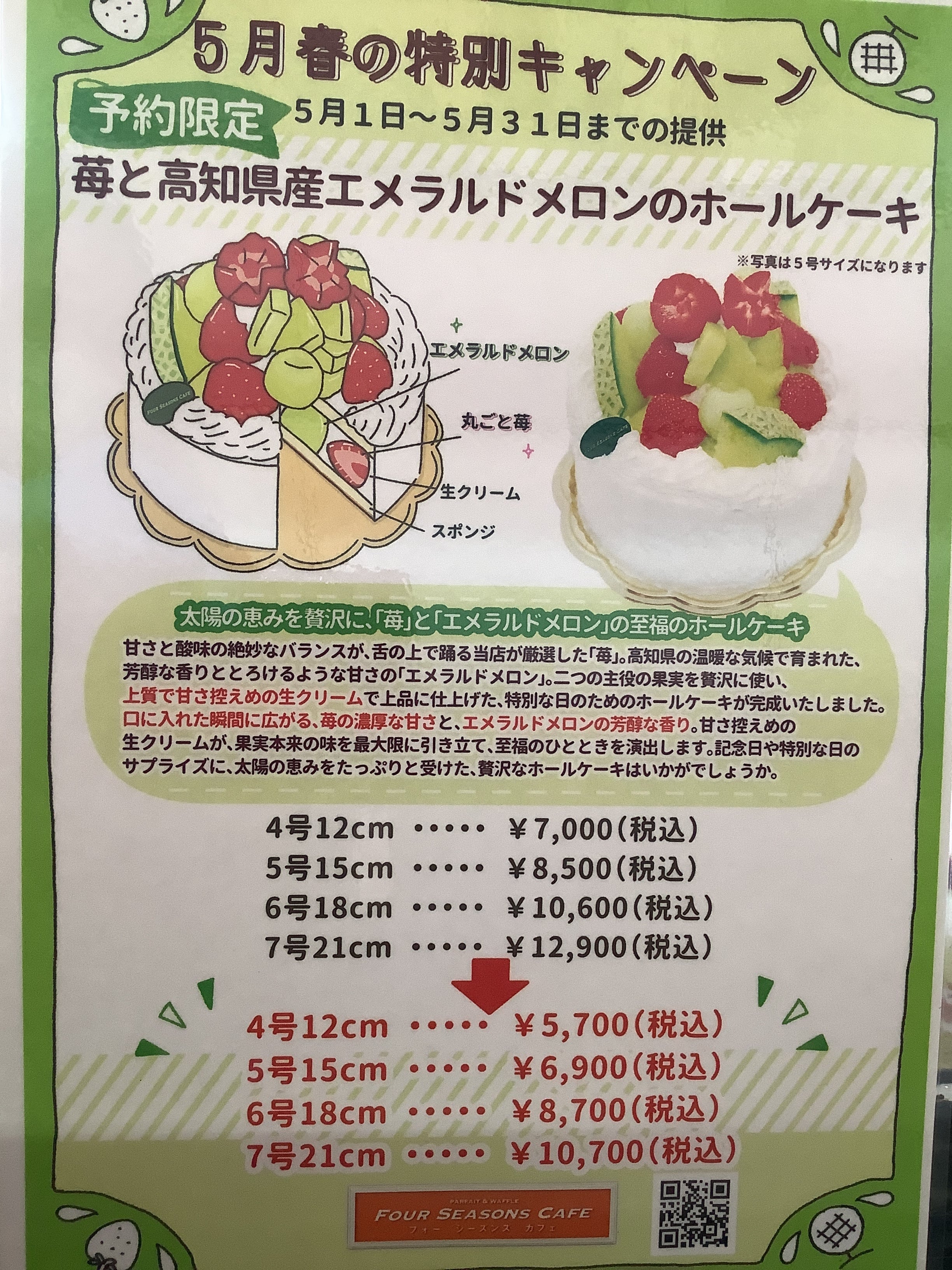 5月キャンペーン【苺と高知県産エメラルドメロン】デコレーションケーキ